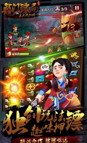 《龙门镖局之大闹江湖》是一款融合了RPG与三消玩法的休闲游戏。游戏以龙门镖局的故事剧情为主线,通过一系列冒险、探索等闯关任务,让四个主角人物得到成长。游戏中设计了极具特色的人物技能,也配备了不同属性的角色武器;玩家可以在游戏中自由组合,在探索和闯关中获得极佳的游戏体验。