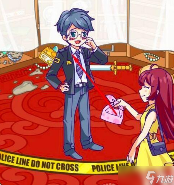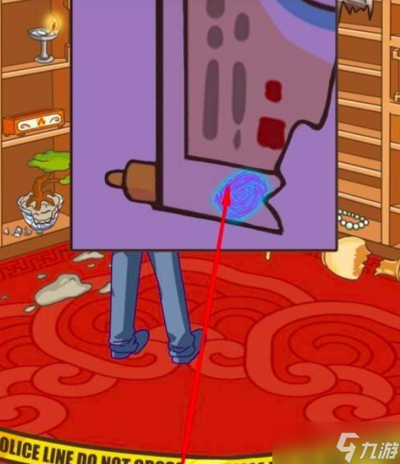 拖动紫外线灯到画上。出现细节图,上面有指纹。