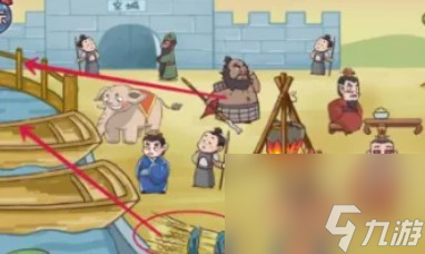最后将张飞拖到长坂坡上。将两捆稻草融合成一名稻草人放在木船上。将稻草放在空字上面点击关羽。七擒孟获将孟获拖到帐篷里面。