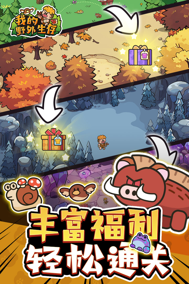 欢迎各位勇士来到原始大陆,在这里你将会展开独属于你自己的野外生存大冒险。 《我的野外生存》是一款站桩塔防生存挑战游戏。玩家需要通过合理的技能升级和资源分配,站桩防守各种野兽的进攻,不断击退兽潮,保护自身的游戏。游戏的创新站桩塔防玩法可以使玩家摆脱繁累的局内操作,轻松的享受游戏乐趣!