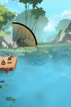 3、进入钓鱼小游戏,分为三个步骤,玩家需要决定抛竿角度、抛竿力度,以及最后的拉杆。