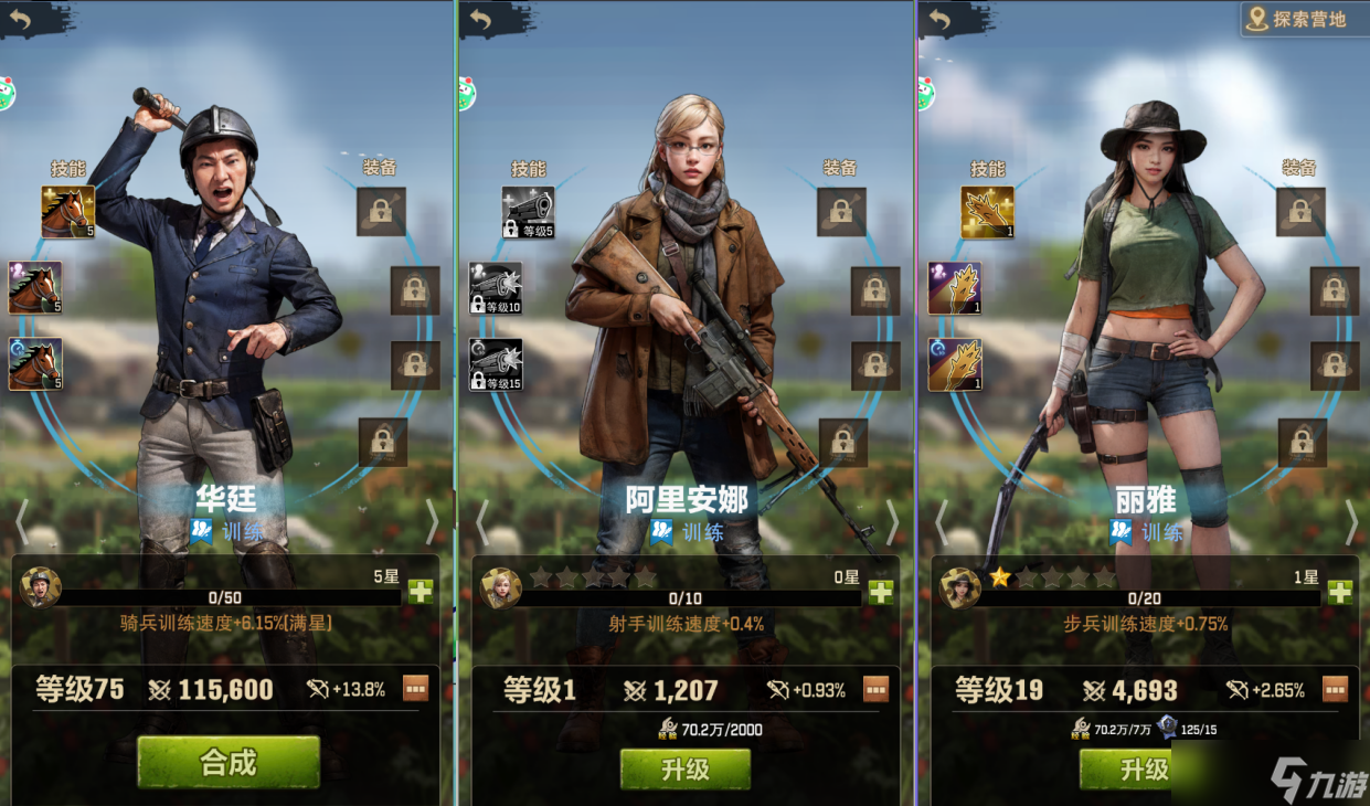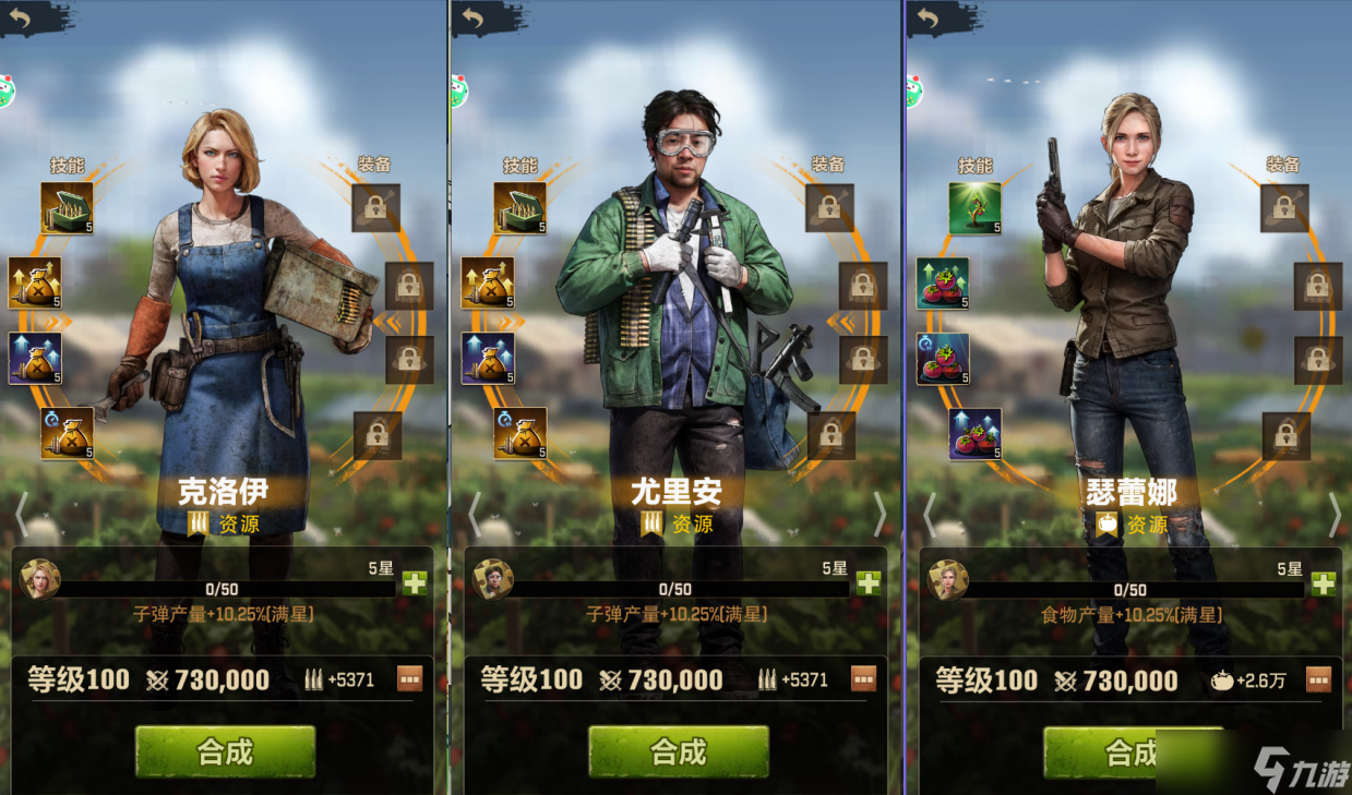 生产调查官可大幅提升生产速度,加快资源收集能力,将他们派遣驻扎在世界地图的相应建筑内轻松提升资源获取效率。生产方面有有肉、木材、蔬菜、净水调查官,其中橙色、紫色、蓝色、绿色品质各2位。比如,星妍、博罗、卡米拉、阿米尔。还有服务于战争资源的生产调查官,比如,生产子弹的克罗伊,有橙色、紫色、蓝色、绿色品质各2位。