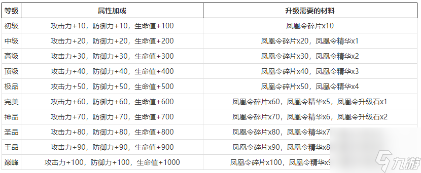凤凰令是《九灵神域》中的一种装备,它可以提高玩家的攻击力、防御力和生命值等属性。凤凰令的等级越高,属性加成就越多,对玩家的帮助也就越大。