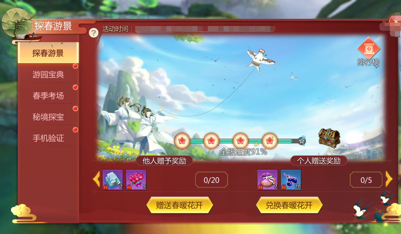最终还会根据玩家赠送春光满园的数量,进行排名: