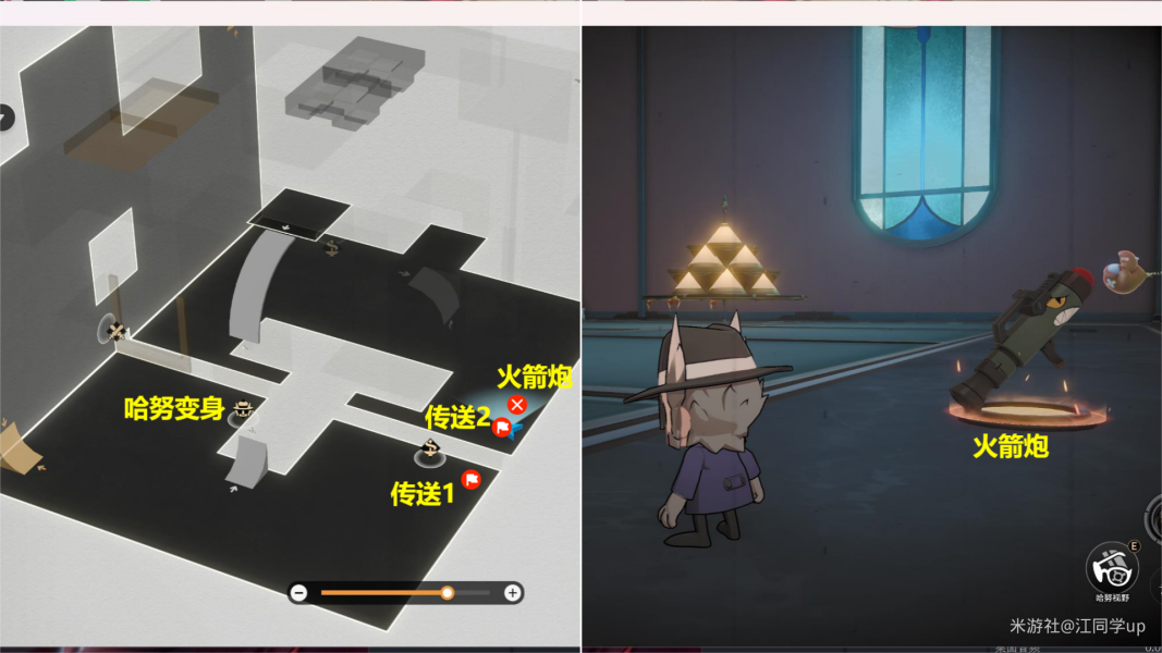 (3)从【桥梁2】上来后,变身哈努,拾取【火箭筒】