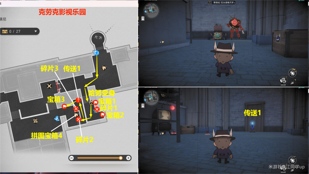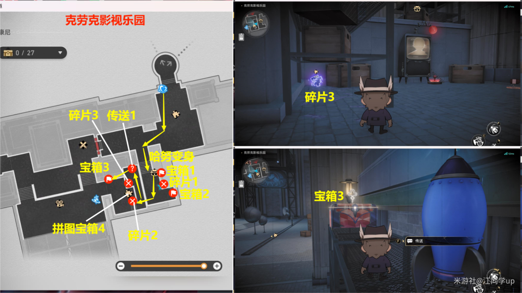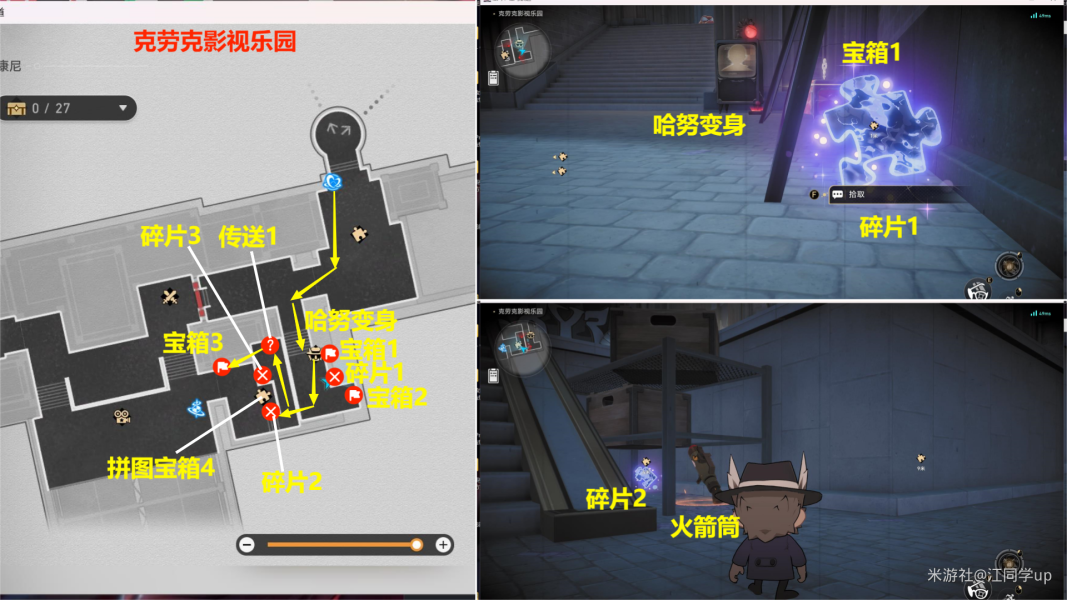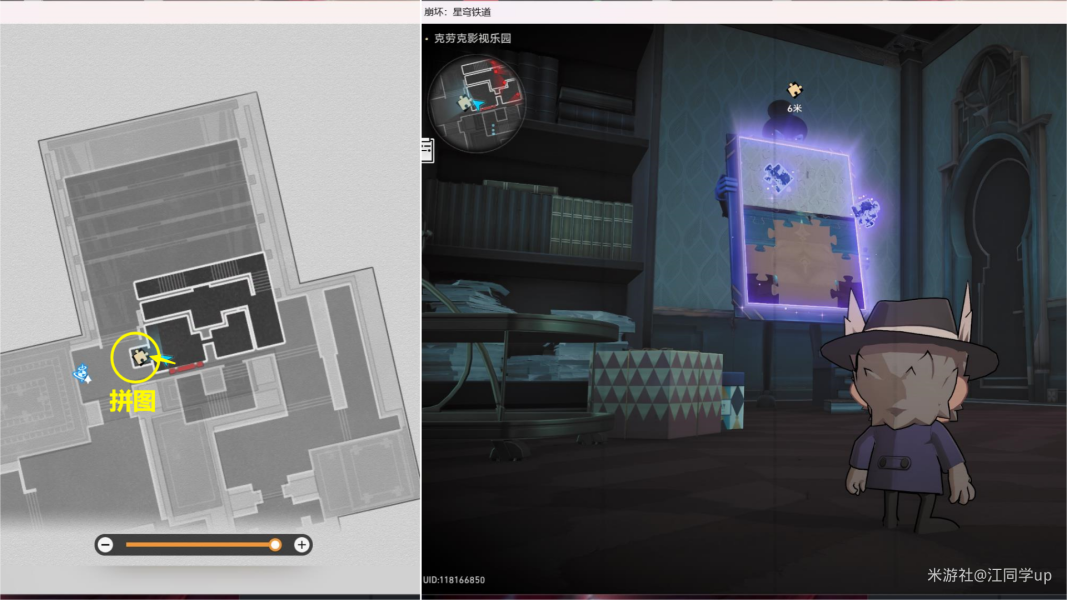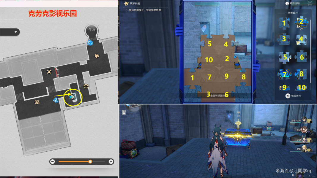 (1)来到【克劳克影视乐园】下图拼图位置【调查】后,3个拼图碎片会飞走
