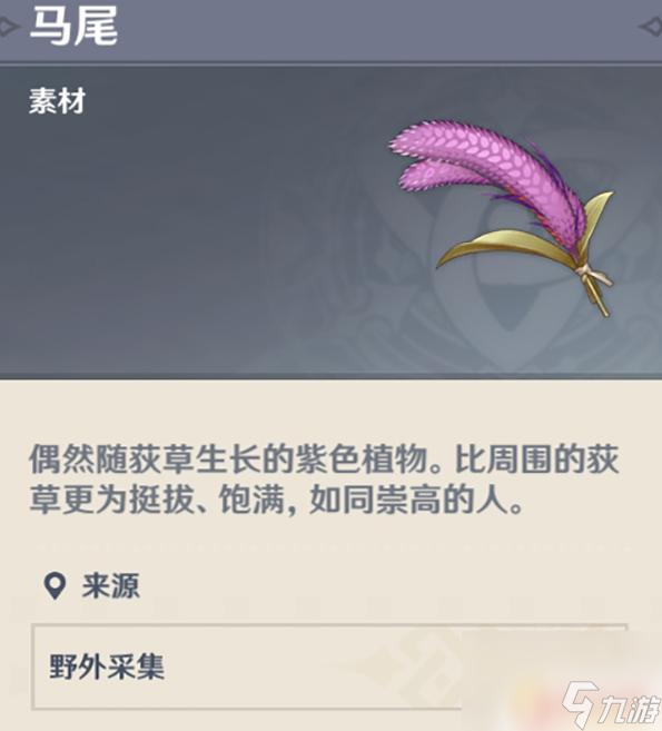 偶然随荻草生长的紫色植物。比周围的荻草更为挺拔、饱满,如同崇高的人。可以用来制作食物——绝云锅巴;
