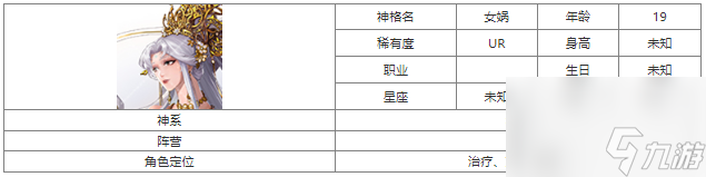 •角色:女娲 - UR神格角色,以其神话背景与强大的治疗能力为核心特色。