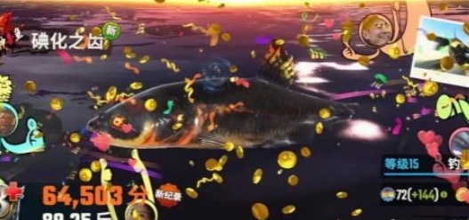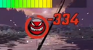3、浮漂动了,等到下图中黄色区域底部就能提杆进行摆杆了, 要着急把鱼拉起来,可以用它引出碘化之齿。