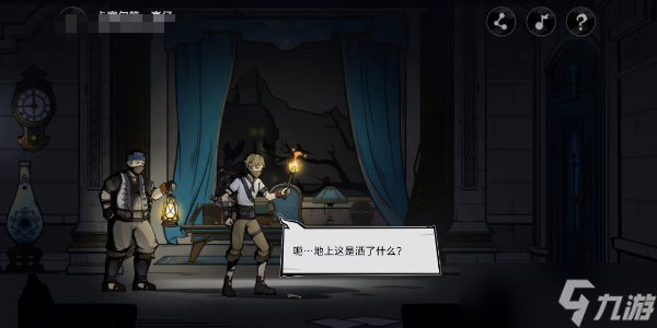 1、玩家首先进入活动中,操作盗宝团向前移动,点击调查获得钥匙。