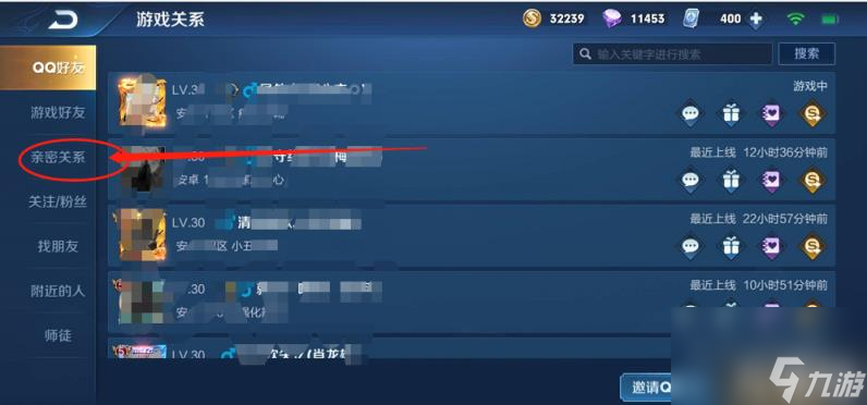 第二步,选择游戏好友,下滑进入亲密关系栏目