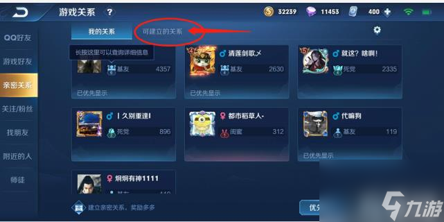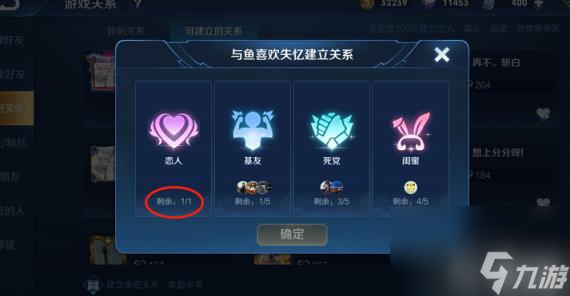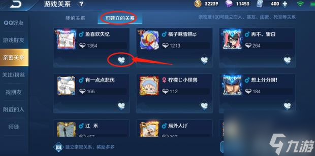 玩家点击好友系统,然后选择【游戏好友】,在右下角有一个【亲密度关系百】。进入后可以选择与亲密值满的好友简历恋人关系