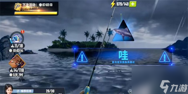 3、选择大堡礁3体力,一直钓直到出鱼骨头,利用小鱼勾引大鱼。