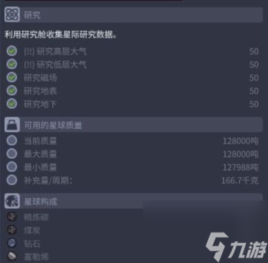 当研究完所有项目后,我们就可以看到星球构成里带?的是什么了。