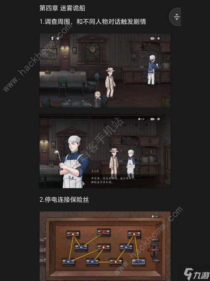 12.进入船员室调查,根据提示调整车钟,和场景中人物对话。
