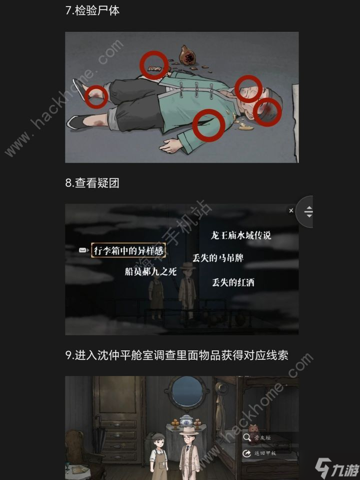9.进入沈仲平舱室调查里面物品获得对应线索。
