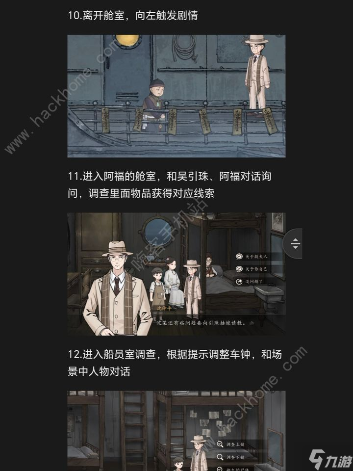 11.进入阿福的舱室,和吴引珠、阿福对话询问,调查里面物品获得对应线索。