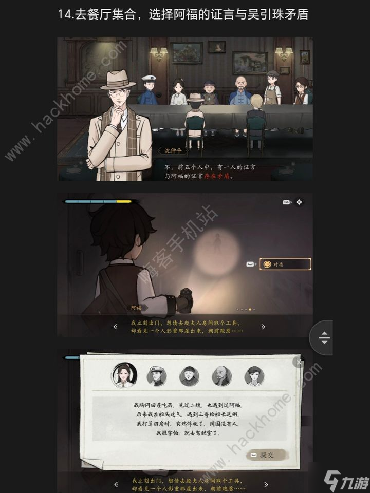 14.去餐厅集合,选择阿福的证言与吴引珠矛盾。