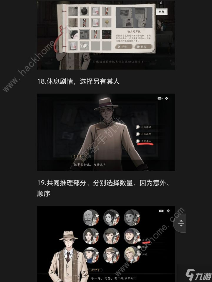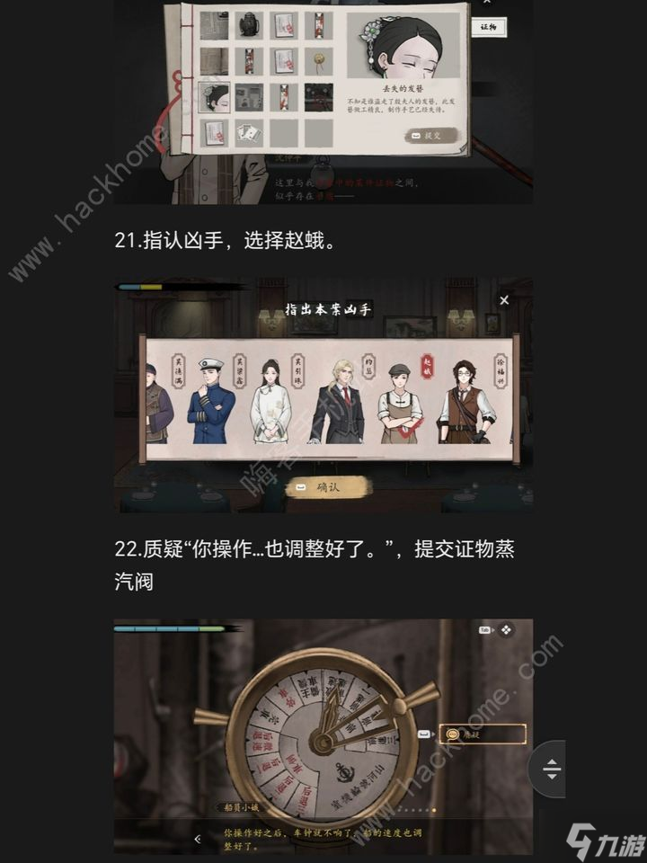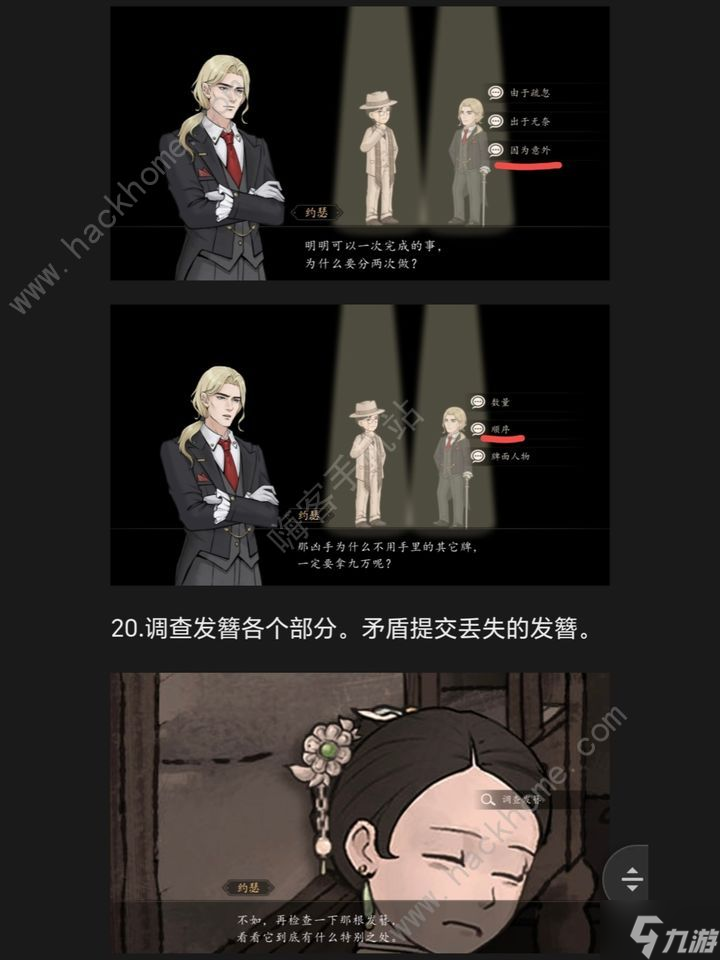 19.共同推理部分,分别选择数量、因为意外、顺序20.调查发簪各个部分。矛盾提交丢失的发簪。