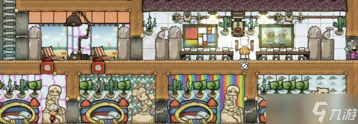 第五步,有闲心的小伙伴可以建造更多元化的娱乐室,而且由于小人吃饱之后会去娱乐室呆着,所以娱乐室的装饰度也至关重要。