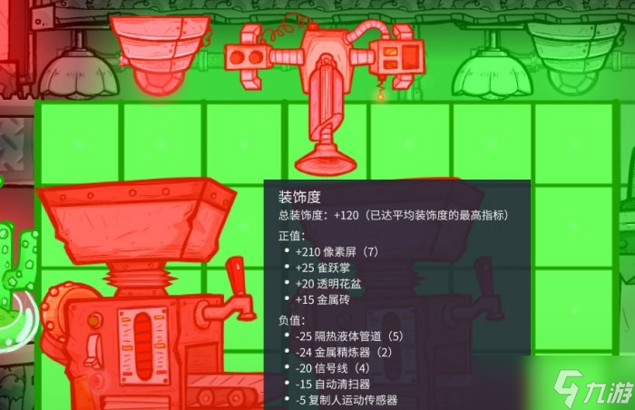 还有一个拉高装饰度的神器——像素屏(用金),而且像素屏算背景建筑,从装饰度角度出发完爆干板墙(当然了,功能是不一样的),哪怕是工业区,靠像素屏也能硬把装饰度救回来。