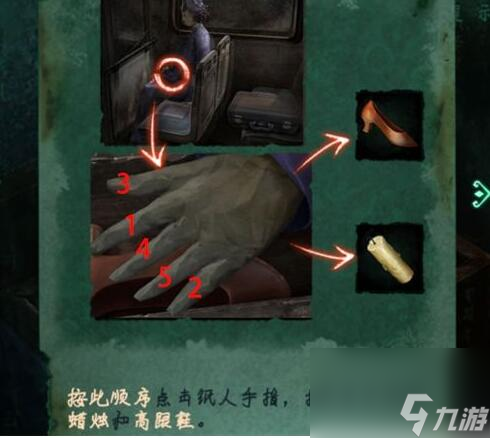 2、点一下,上面有线索,根据上面字的顺序打开纸人抱着的那个箱子