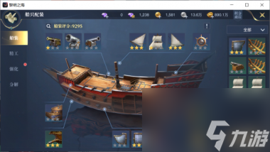 船装大致可以分为四个部分:炮、甲、骨与帆,共计14个装备位置,包含了攻击、防御、耐久、暴击等等词条属性,加成非常关键。