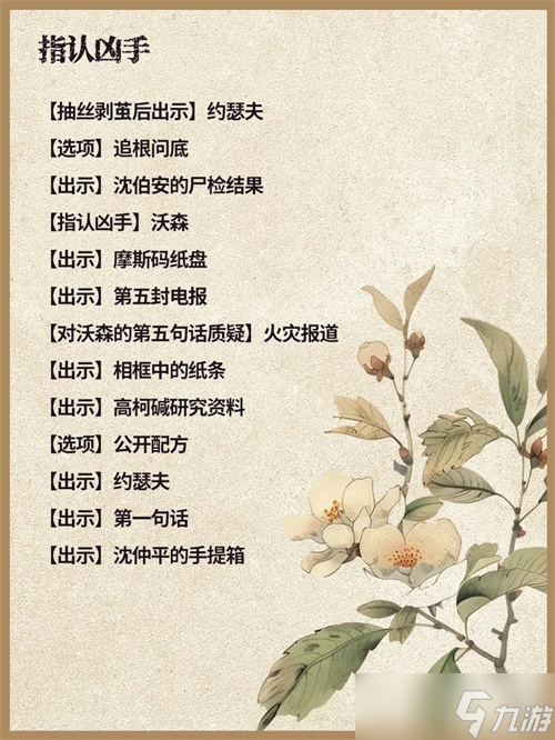 最终,玩家需指认丁香为凶手,并通过出示沈伯安的证据进行灵魂拷问。