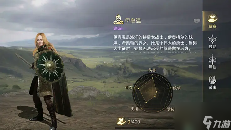 游戏中,伊奥温作为史诗级指挥官,生存、伤害和支援属性表现亮眼。她的盾牌一挡,就能在战场上布置一道坚固防线,有效抵御敌人的进攻。