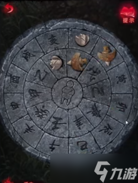 3、根据墓碑上的丁丑、C字和图形,将天干地上的东西托盘放在合适的位置即可获得石刀。