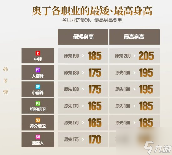 在《PF初始能力选择,堆能力方法科学指南》篇中我就有提到,初始能力和身高的关系是大家很容易忽略的一个点。要将自己的好不容易获取的角色堆叠出心满意足的能力,精确的提前计算也是要下一定功夫的。此次的奥丁与之前的哈托尔又有所不同,哈托尔作为女性角色在后卫职业中,可以选到最矮例如SG的155身高;而奥丁作为男性角色则是可以在C职业上选择到界限突破的205cm身高。与其他角色3档相比,5档身高区间让玩家能够有更多选择,虽然总能力不变,但是更多的能力变化还是相当不错的体验!