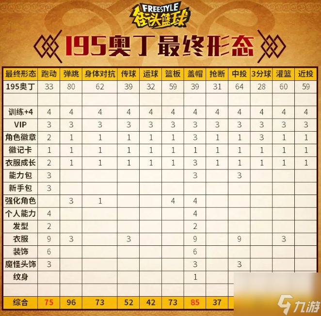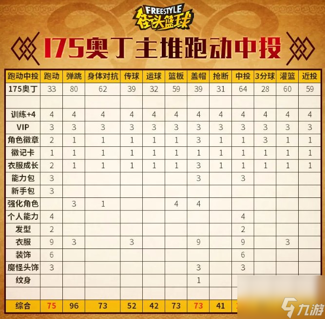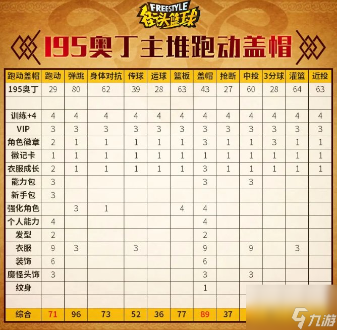 满足PF所有影星能力的同时,你可以最大化跑动及中投属性。75的跑动你快赶上SF了,相应的89点中投也让你在进攻端有着多样化的选择,配合上奥丁那中投的变态速度,真正诠释了什么叫做最锋利的矛。