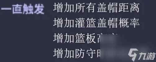 对于专用能力,笔者很想创新,但想到角色来之不易,还是选择了较为稳妥的:增加篮板高度、增加所有盖帽距离、增加灌篮盖帽概率、增加防守时移动速度。
