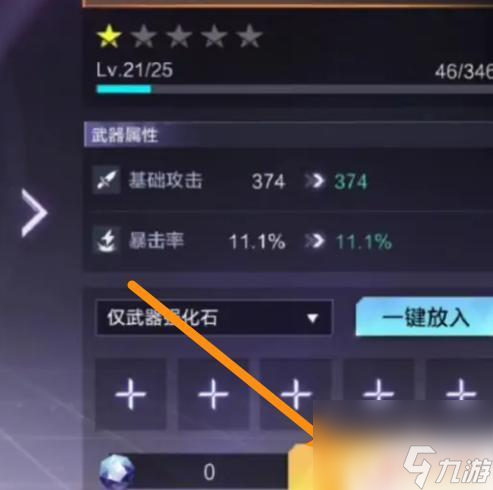 最后在放好武器和升级石后,点击下方的强化按钮即可成功升级武器。