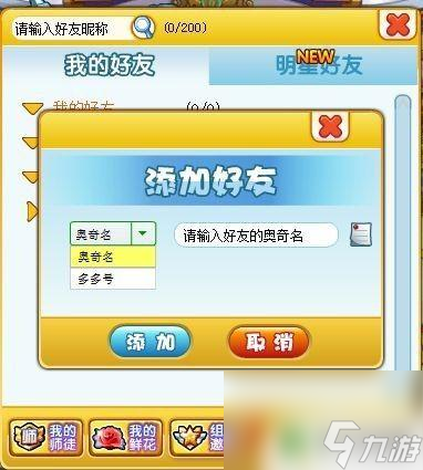 3.添加好友的方式有两种,第一种是奥奇名就是玩家在游戏中的名字。第二种是输入奥奇玩家的多多号!