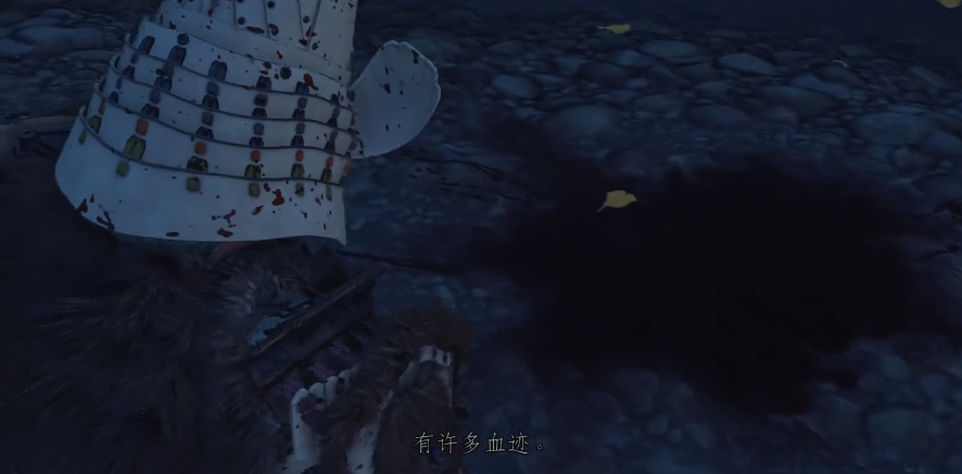 4、然后玩家将附近的敌人清理完毕后,根据线索提示来到河里发现血迹。