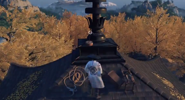 2、玩家能够看见一个高塔,这时候使用钩锁来往上爬。
