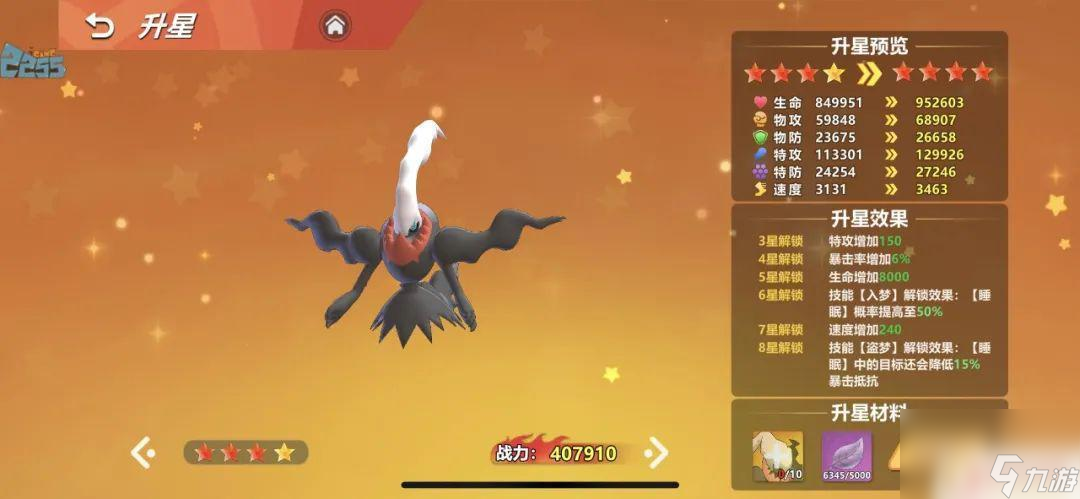 在培养宝可梦的页面中,点击升星就可以进入对应界面了。