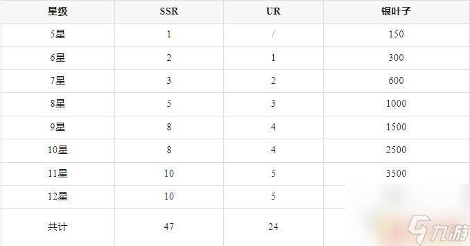 一般我们只使用SSR级和UR级宝可梦,我整理了下这2个品质的宝可梦升星所需的宝可梦数量以及银叶子数量: