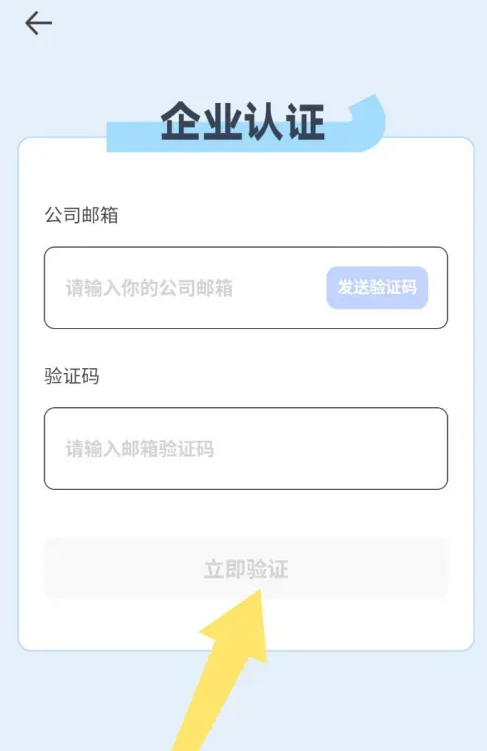 4、输入公司邮箱、验证码,点击立即验证即可。