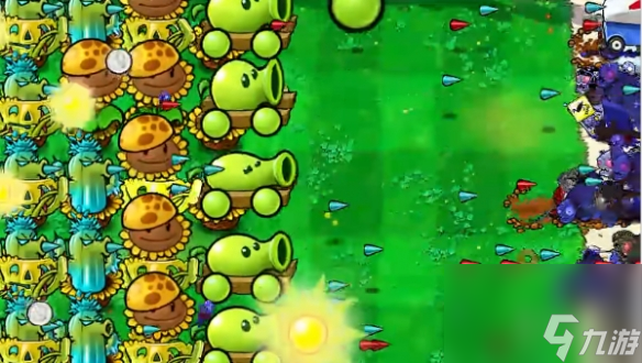 5、最后在右侧补齐一列豌豆大炮就可以轻松过关了。