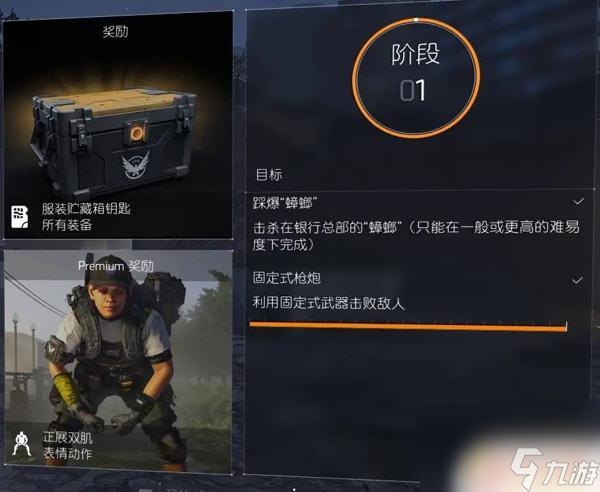 1、阶段1、踩爆“蟑螂”:在一般难度下进行银行总部,并击杀最终Boss“蟑螂”。找带有固定机枪的控制点完成固定式枪炮→以一般难度游玩银行总部并击杀最终Boss"蟑螂"。