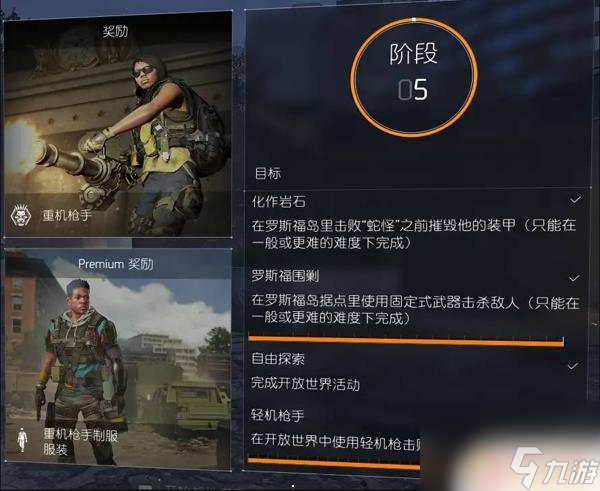 5、阶段5、推荐过程:装备轻机枪以完成轻机枪手和自由探索,在完成轻机枪手后可以将武器换成自己喜欢的武器→前往一般难度下的罗斯福岛完成化作岩石和罗斯福围剿。