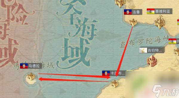 1.首先就是贸易区域,在商会组队贸易的区域是西欧-北非贸易区,对应的两个区域是西地中海和北大西洋东岸,而这个贸易区是游戏中最低等级的一个贸易区。