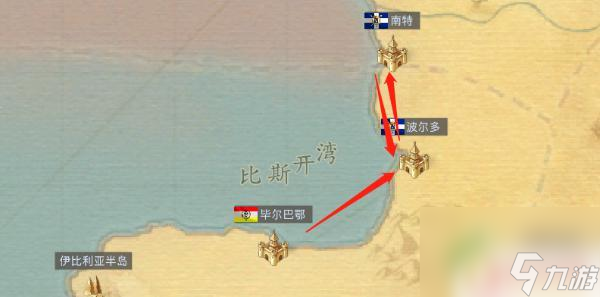 6.第三天是“毕尔巴鄂”——“波尔多”——“南特”,具体来说就是将毕尔巴鄂的羊毛卖到波尔多。波尔多的葡萄醋卖到南特,南特的牛肉卖到波尔多,也是把这三种货物卖光。