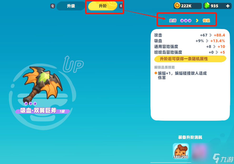 好比巴巴六在扣头礼包中!购置了“吸血飞蝠王”的紫装!便可以在配备的养成界面中!经过“升阶”将其晋级为橙装(传说品格)!
