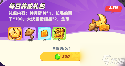 该礼包中包括了神月碎片、长毛的菌子、大块配备结晶等紧张的养成道具!而且是逐日限购!