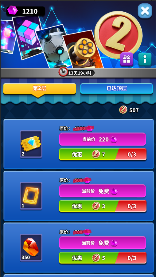 3.当前层的奖励全部兑换后,会自动解锁下一层的奖励。