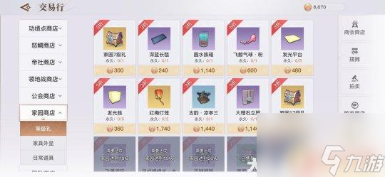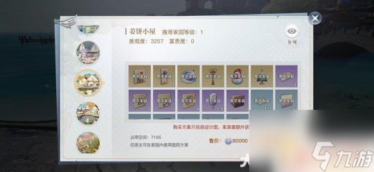 然后就是家园布置方面,图纸可在“家园-名苑”处购买设计图纸。