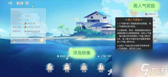 菜单-家园-右上角 周人气值达到20,可以获取1000家宅币。